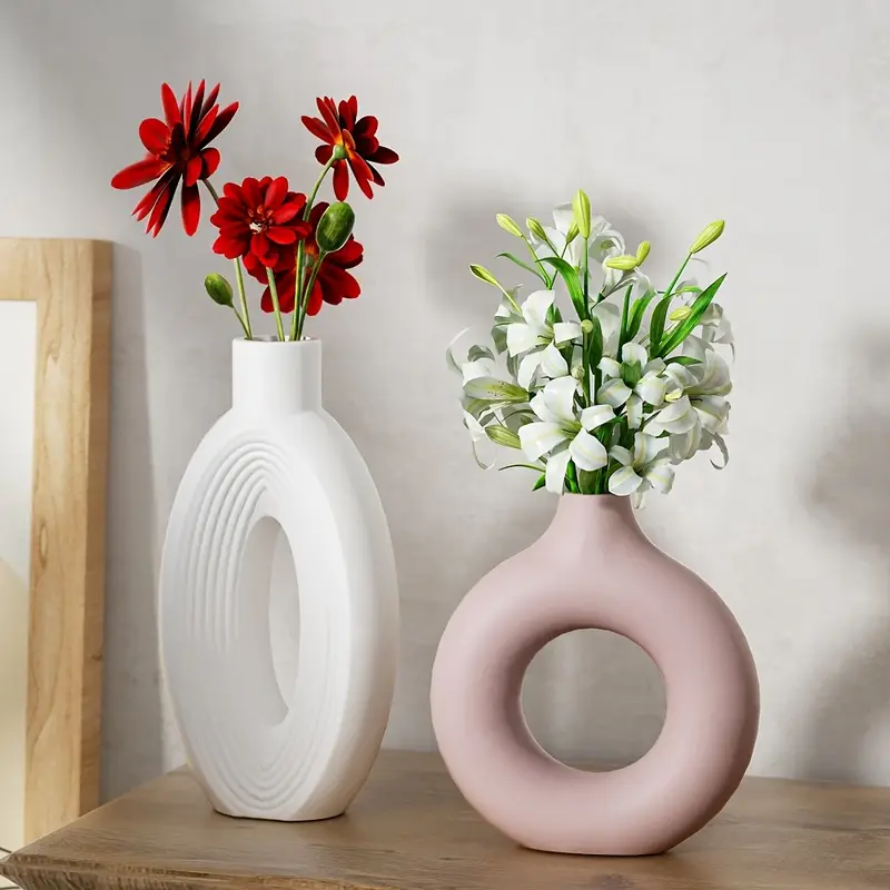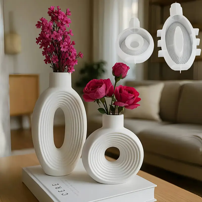2 قطعه قالب سيليكون كونكريت فازة دونتس مقاسين L - S مستلزمات الحرف اليدوية، إبريق زهور ديكور، ديكور بسيط، تشطيب ناعم