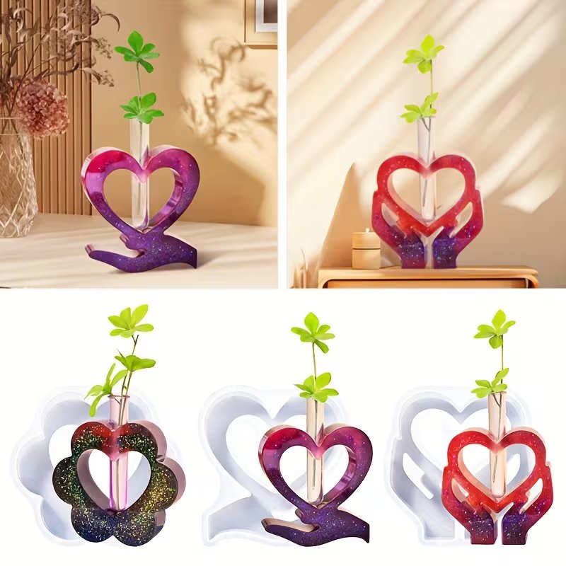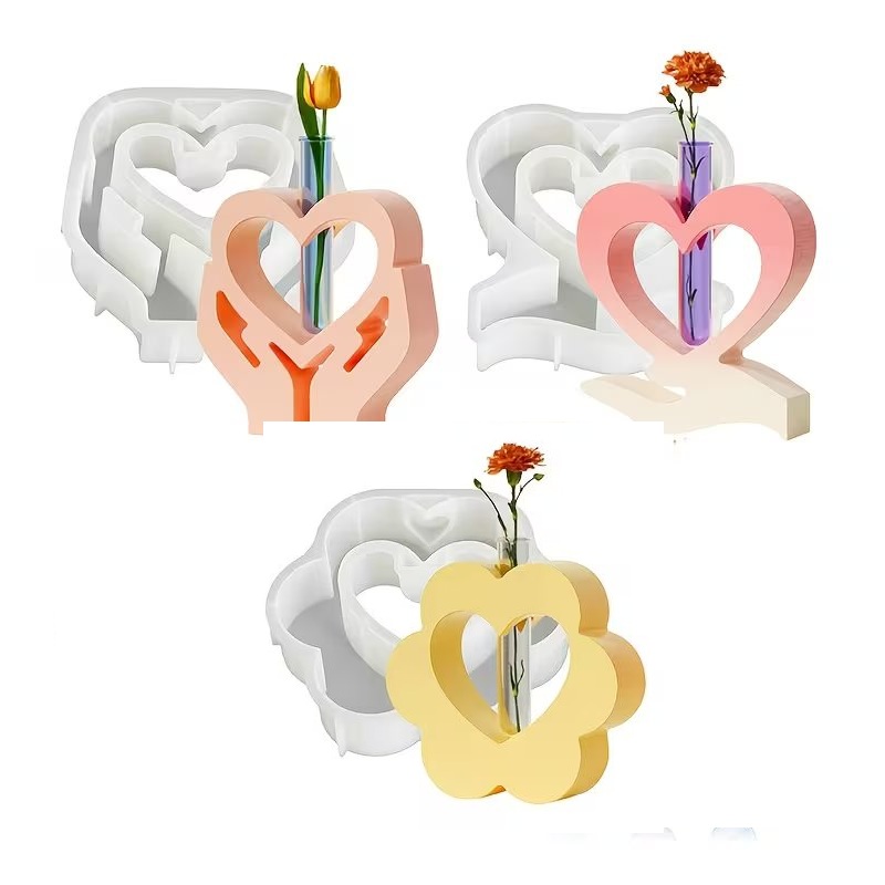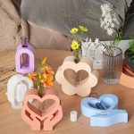3 اشكال قوالب سيليكون كونكريت تيوليب لصب الجبس على شكل قلب، وقوس على شكل قلب، وزينة مزهرية زهور، ومزهرية داخلية على شكل قلب
