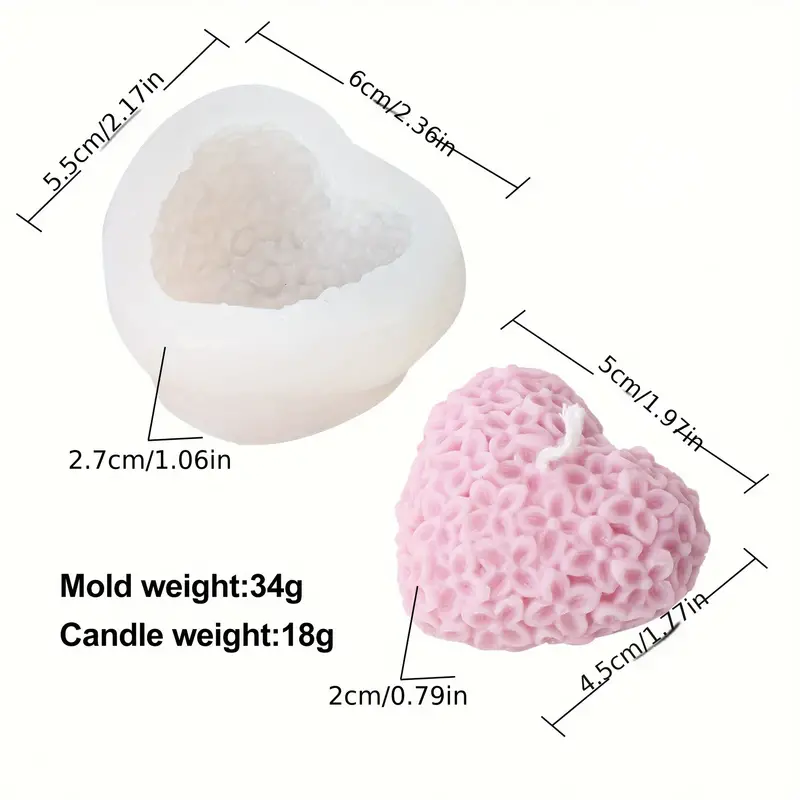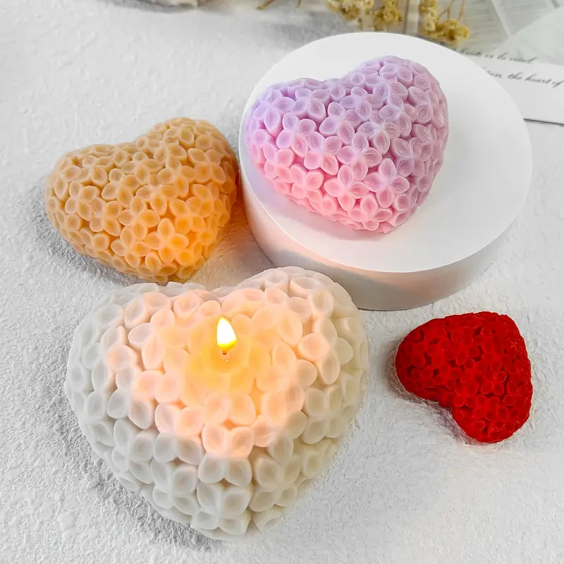 3 قطع من قوالب السيليكون على شكل قلب زهرة، قوالب زينة على شكل قلب من للشموع