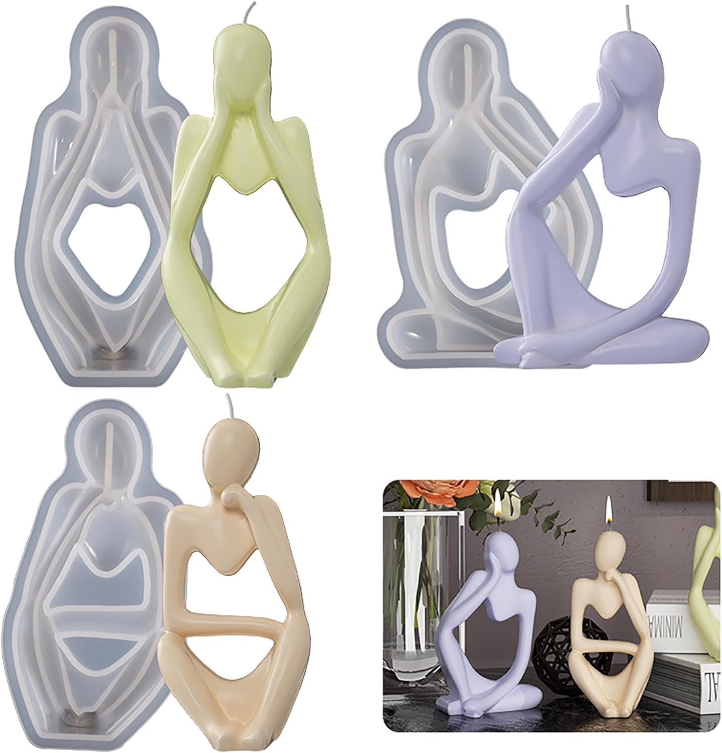 【مفكر فريد】 أظهر شخصيتك وذوقك النبيل بالكامل، تصميم المظهر الخاص منعش. تفاصيل قالب شمعة THINKER الشفافة تجعل أعمالك حيوية وتجعل ديكور منزلك غير رتيب!