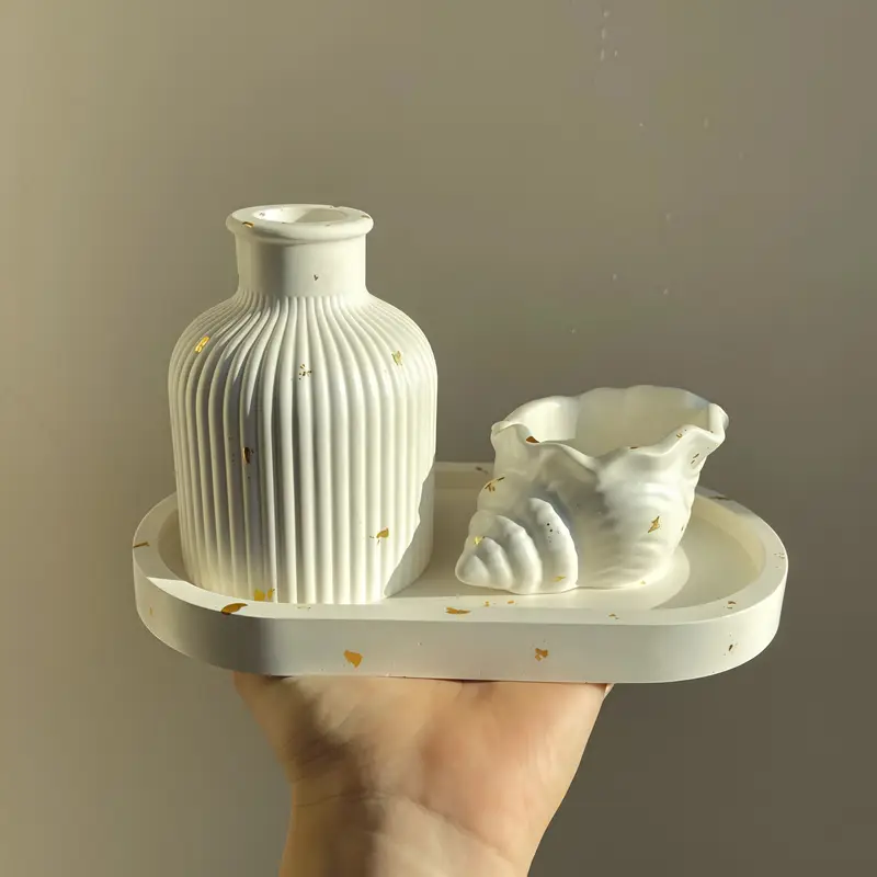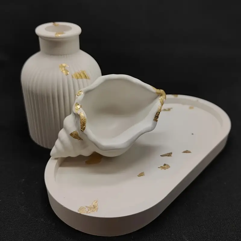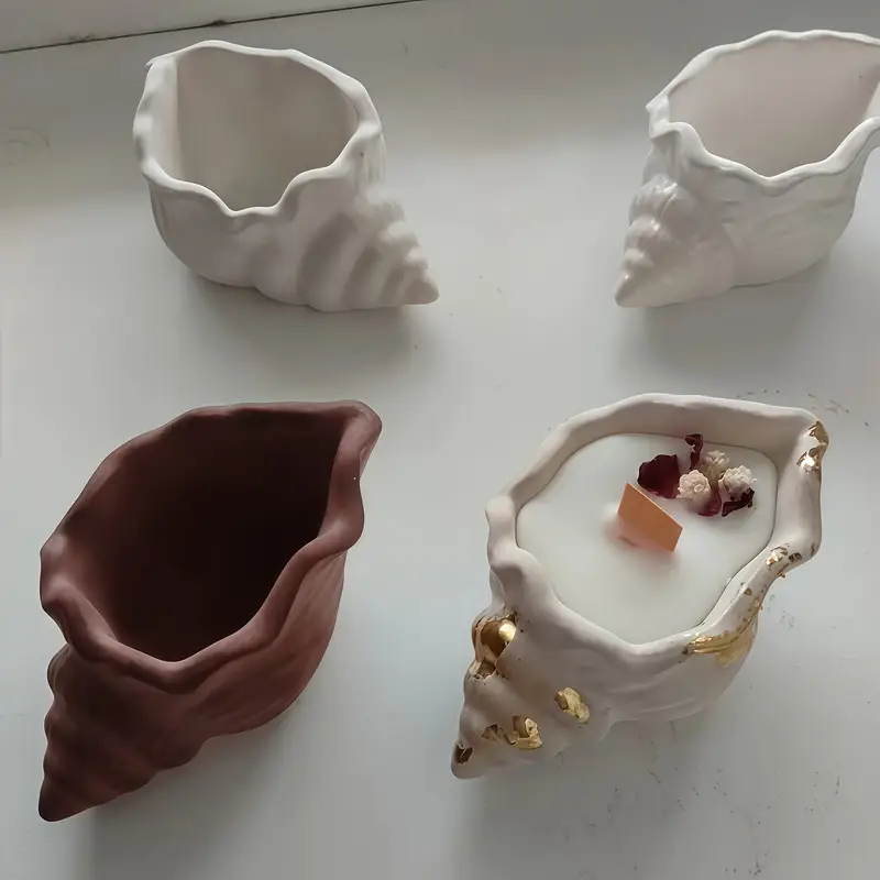 3 قوالب سيليكون كونكريت فازة ترند قوقعة كوستر 18 سم