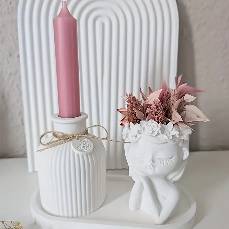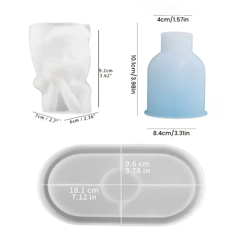 3 قوالب سيليكون كونكريت فازة ترند كوستر 18 سم بنت نايمة على جنبها اليمين