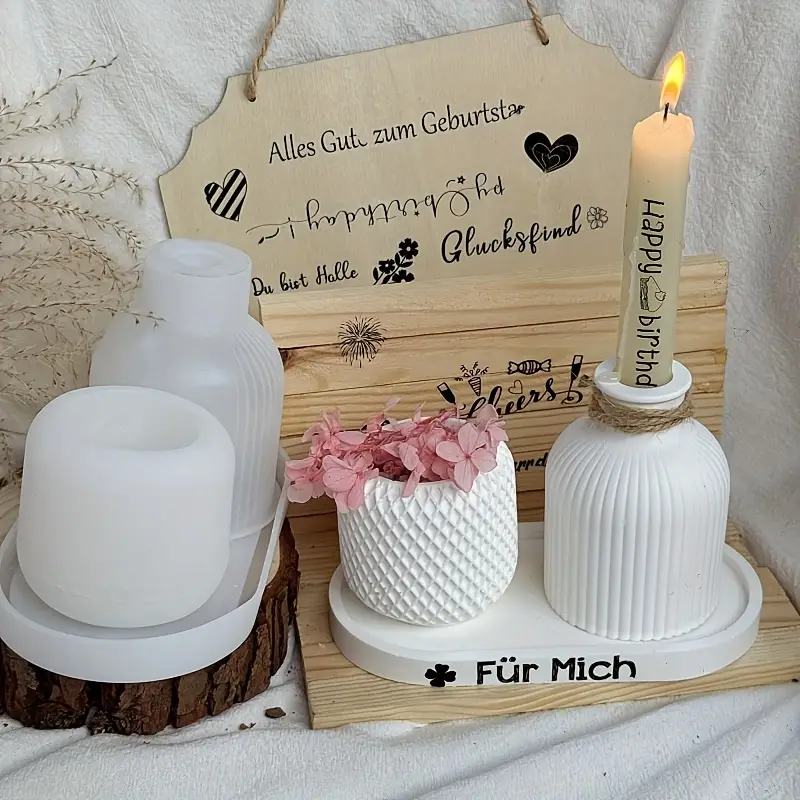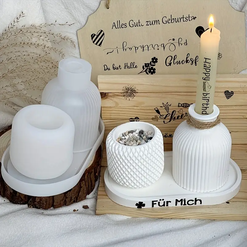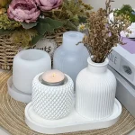 3 قوالب سيليكون كونكريت مكونه من الفازة المخططة الترند كوستر 18 سم حامل شموع مخطط
