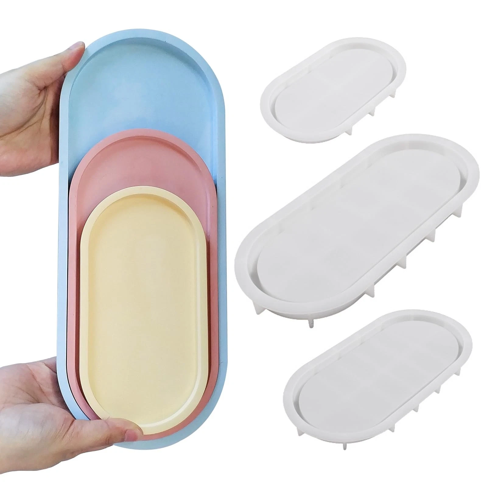 تتضمن مجموعة قوالب صواني الأطباق لدينا: قوالب سيليكون بأحجام كبيرة ومتوسطة وصغيرة، بيضاوية الشكل، ومتوفرة بأحجام مختلفة. مقاسات الصينية البيضاوية موضح بالصور
