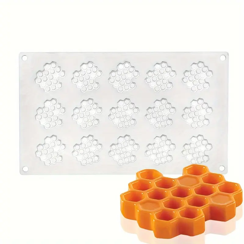 قوالب كيك موس من السيليكون، قوالب خبز ثلاثية الابعاد، 15 فتحة على شكل خلية نحل،