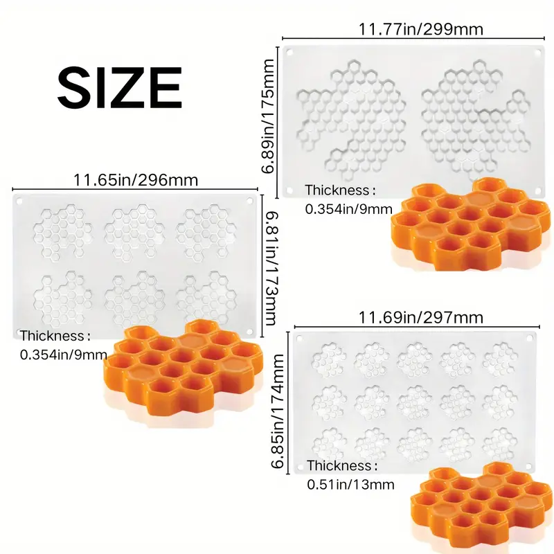 عرض خاص 3 قوالب سيليكون 3 اشكال على شكل خلية نحل قالب فينش خليه النحل قالب موس كيك للشوكولاتة – سهل الفك ومتين وقابل لإعادة الاستخدام
