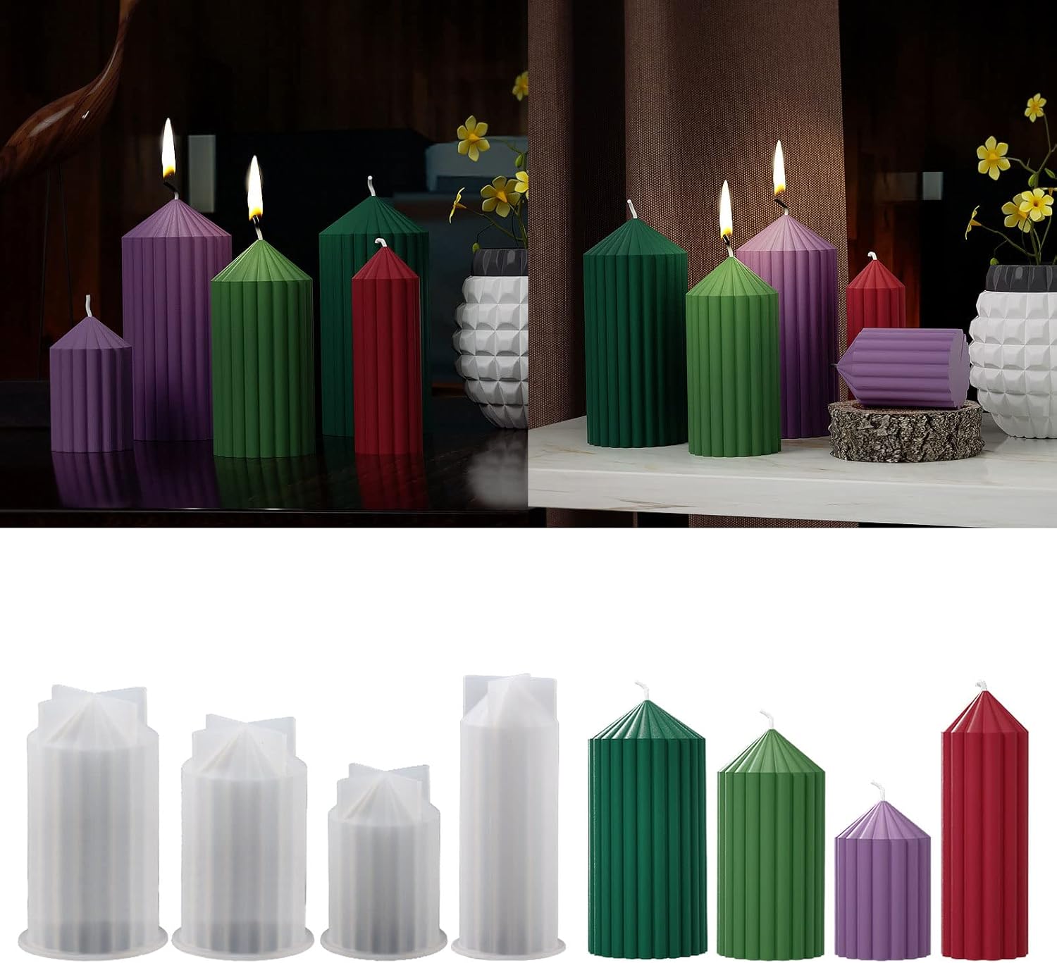 4 مقاسات من قوالب الشموع العمودية المخططة لصنع الشموع قوالب شموع سيليكون مخططة ثلاثية الابعاد، قوالب شموع معطرة لصنع الشموع والصابون وصب الكونكريت