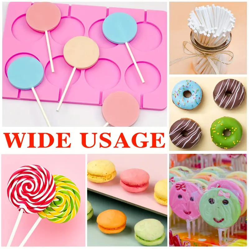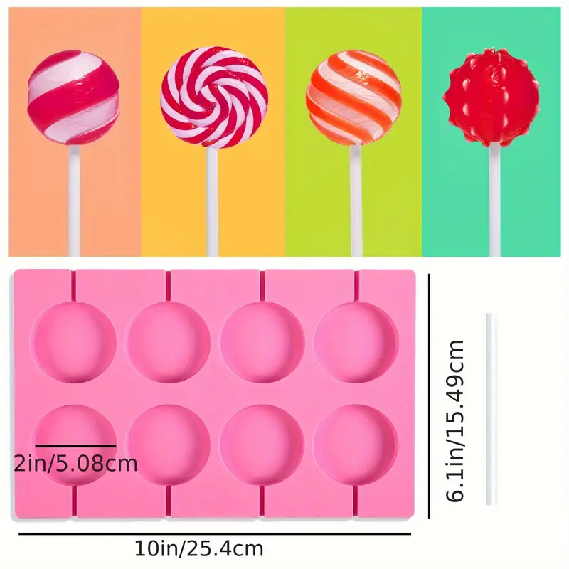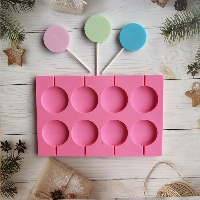 قوالب مصاصات سيليكون دائرية مكونة من 8 قطع، قوالب مصاصات حلوى